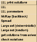 By choosing "Solve" in the main window of DISCRETA, you get the menu above. Here you have the choice between different solvers for integer matrix equations.