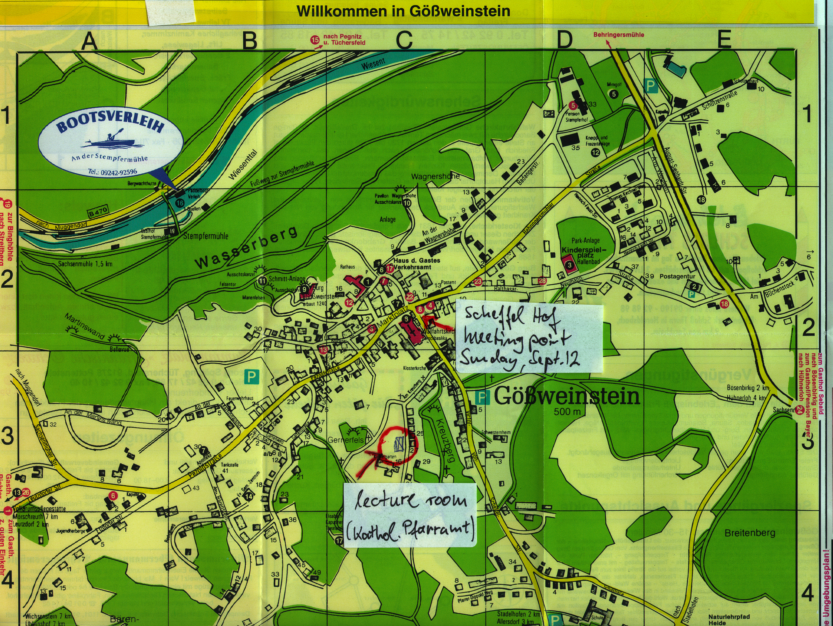 The following maps show the meeting point and the lecture room in Goessweinstein. We have a small version and a large version of the map. If you click on the following maps, you get the full map: