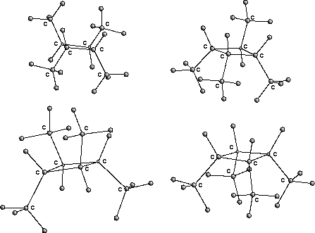 After generation a visualization of the result is needed. In setting up the display a two-dimensional placement function is called for drawing the molecules. Having done this for the 217 isomers of benzene, you will see the well-known benzene ring showing up as number 214 (see Figure 1). The molecule no. 215 is benzvalene, which was in fact discovered just 25 years ago, while its existence had been postulated by E. Hückel already in 1937.
